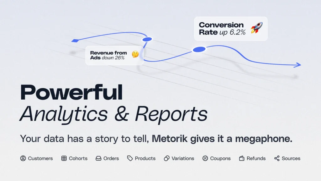 Metorik gives you real-time reports, visual dashboards, segmentation tools, and automated email marketing — everything you need to grow your store smartly.