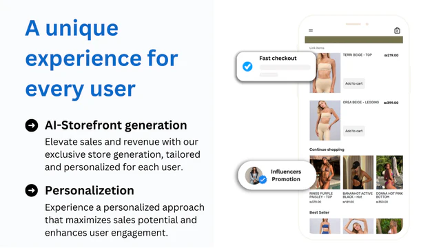 Convert stories, posts, or influencer content into a fully functioning store experience β no app install required. -